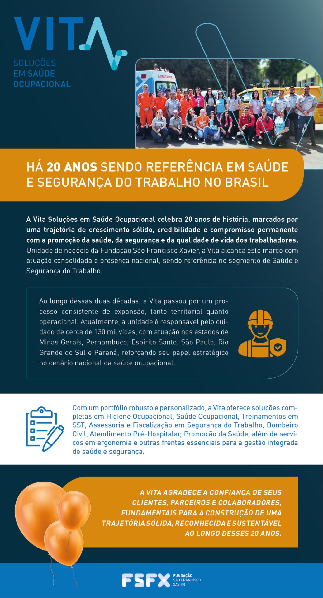 Vita celebra 20 anos de atuação em Saúde e Segurança do Trabalho